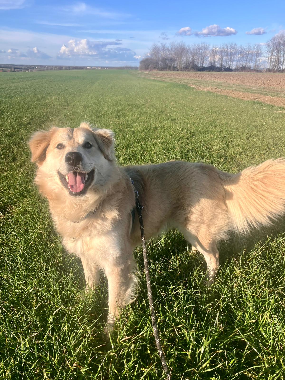 He also adores interacting with other animals — though he genuinely cannot understand why chickens or sheep wouldn’t want to join his very fun chasing game. That part is still a work in progress (especially for the sake of the poor farm animals!).