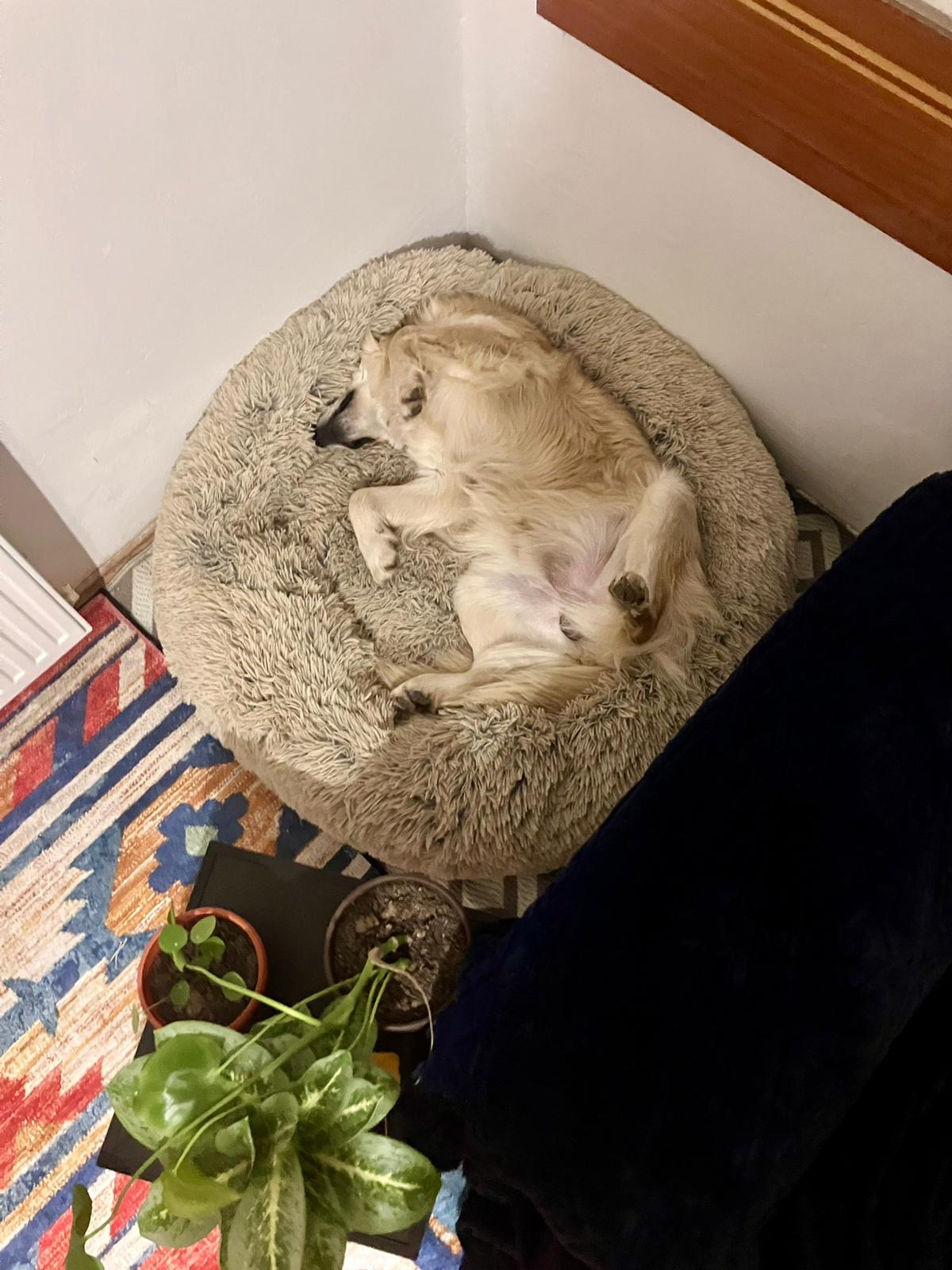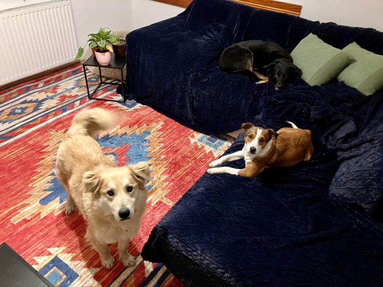 Thankfully, Barney adjusted to the good life at lightning speed. He is now absolutely amazing in the house — perfectly clean, and he’ll let you know if he needs to go outside beyond his usual toilet routine. He sleeps peacefully through the night and waits patiently in the morning… until he hears his foster parents stir. That’s his cue to hop into bed for his official Morning Cuddle Session™. According to his foster mum, it’s the single best way to start your day and a 10/10 therapeutic experience.