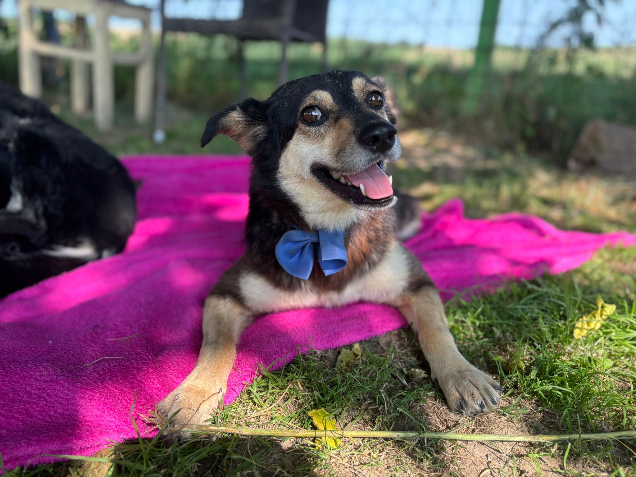 Kika is the undisputed star of the shelter—a little miracle wrapped in joy, strength, and pure determination. We found her in a field, dragging her back legs behind her after getting hit by a car. Her hind legs had to be amputated, and from there began months of physiotherapy to strengthen her core and front legs so she could use the wheelchair we prepared for her.