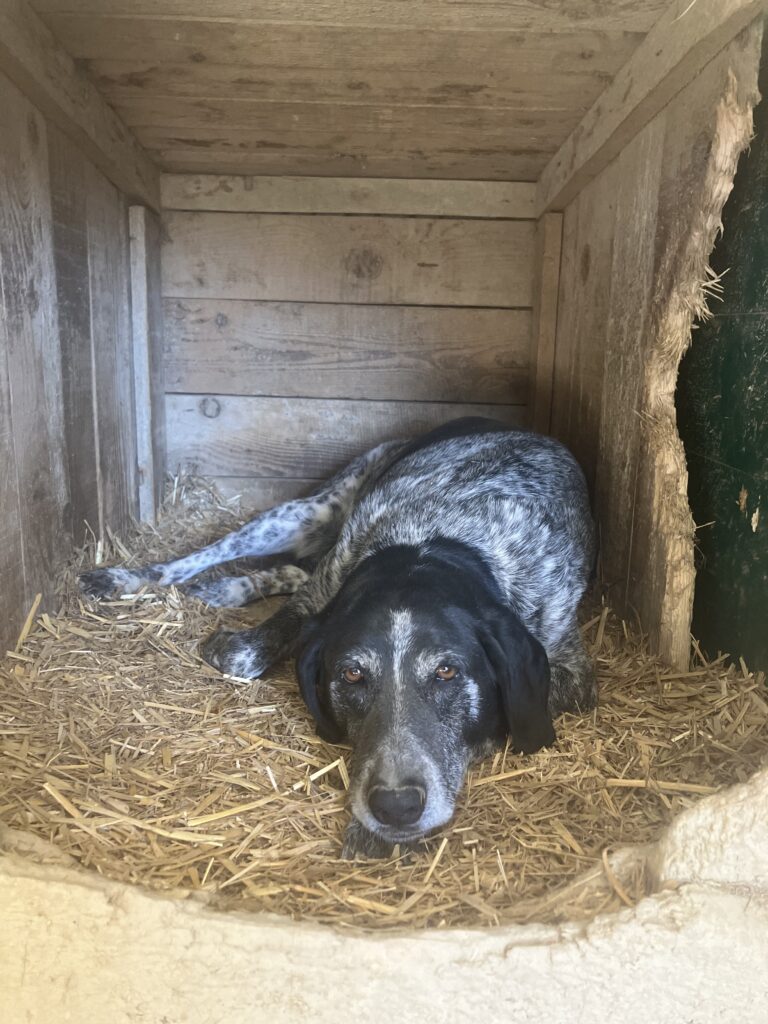 Pjegica is a very shy little soul. She won’t be the one racing around the park — her happiness is found in quiet moments, gentle touches, and soaking up the sun.