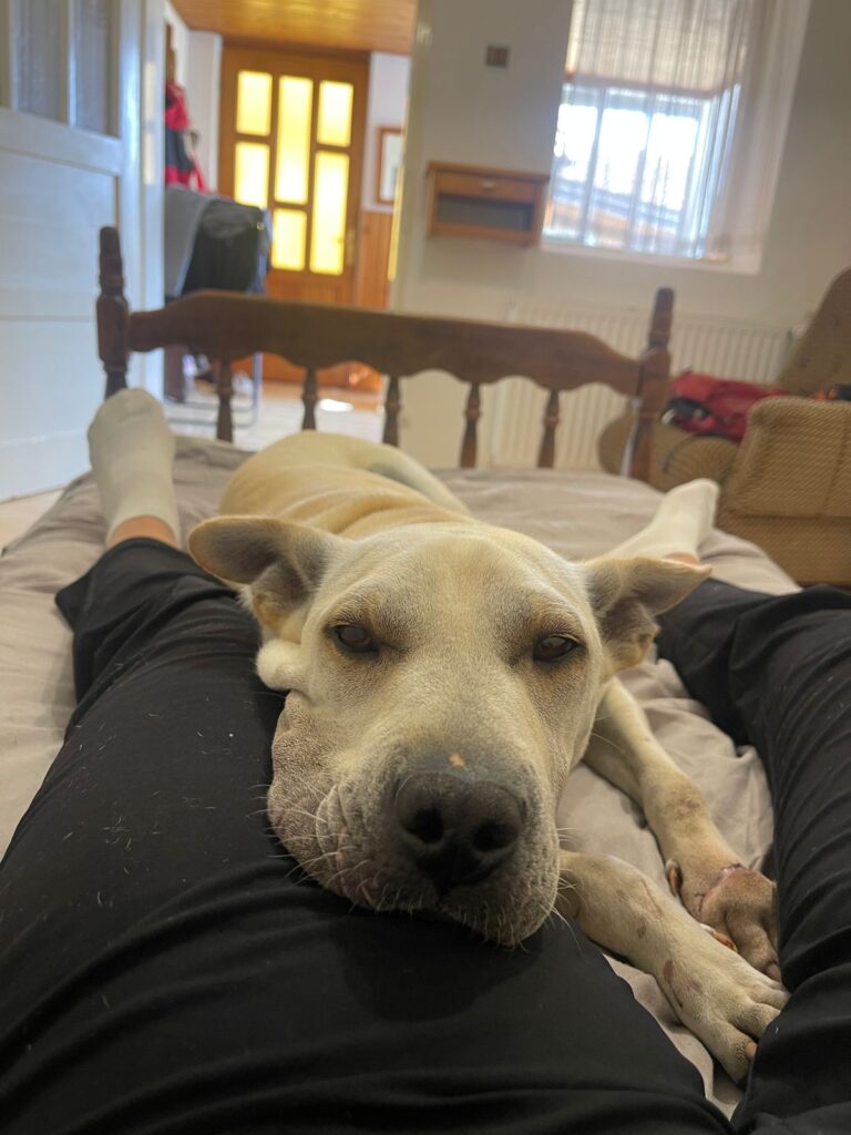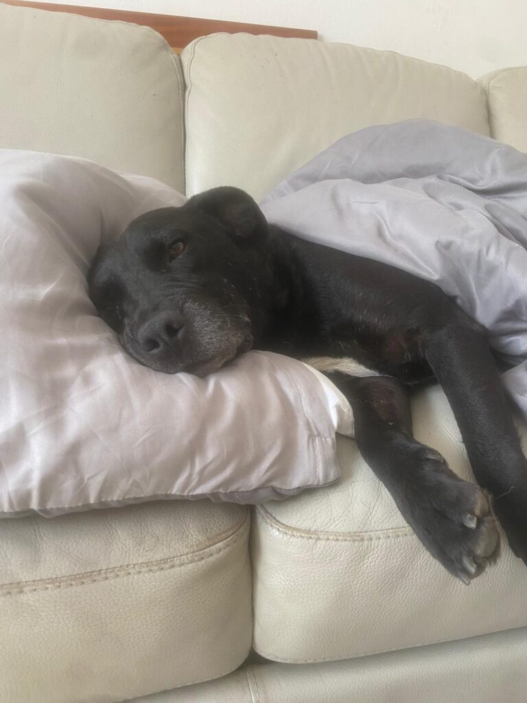 She’s the dog who’ll melt into you for cuddles… once you’ve earned her trust. Bucka is house-trained, super chill, sleeps through the night, and listens beautifully.