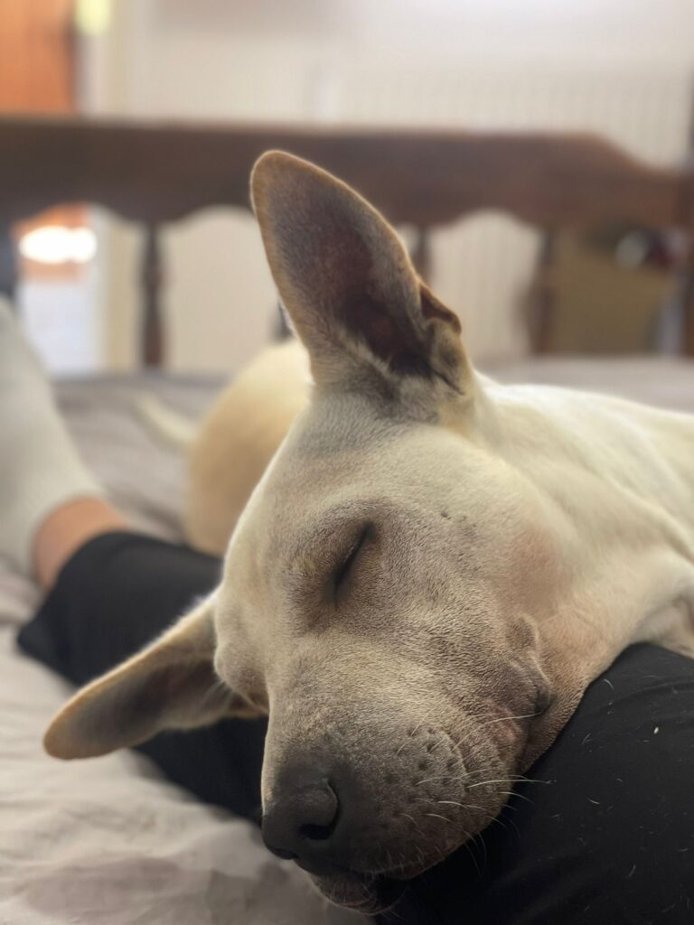 Chiara is an absolute favorite among our team. She’s all about cuddles—often climbing into your lap or lying on her back to relax and be close. Super sociable and affectionate, she gets along well with many dogs, walks very well on a leash and is comfortable being lifted too.