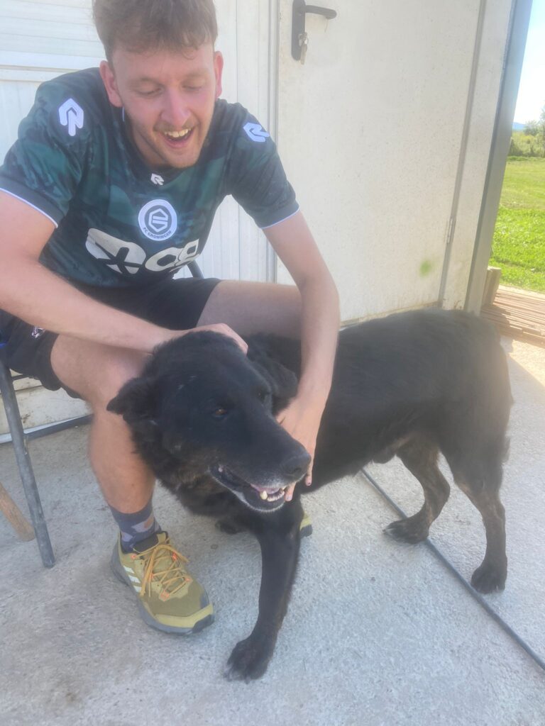 Heāll thrive in a home with a soft couch he can share with his human, daily walks, and a high fence in case heās left alone for long in the yard, as he might get creative if bored!